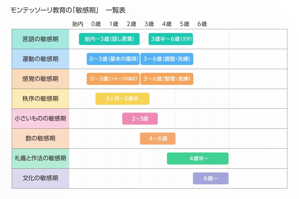 敏感期は8つの種類に分けられており、各敏感期は始まるタイミングが異なります。敏感期には終わりもあり、その時期を過ぎてしまうと、能力の獲得が難しくなると言われています。子どもの敏感期を見逃さないようにアンテナを張っておく必要があるのです。