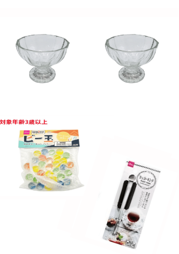 - 1つのデザートグラスの中にビー玉を数個入れる